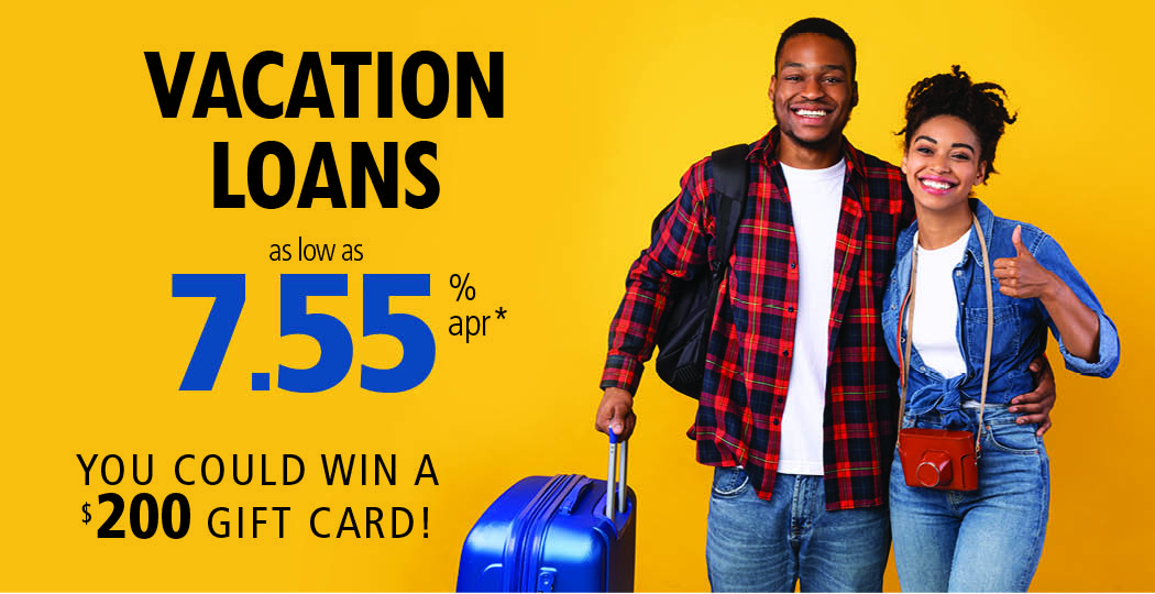 Take a well-deserved vacation with an affordable loan from MSCU and you might win a $200 gift card. Find out more here.